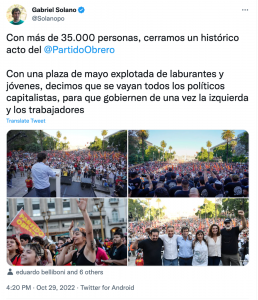 The massiveness of the PO rallies would not have been possible without the struggle and the victory of an impressive tire workers strike. This was led by militant leaders who organized the strike democratically, fought for 5 months, and won a wage increase that brought them above the 100% rate of inflation, and indexed their pay going forward to the inflation rate as well. This was an achievement that has fueled the courage of other sectors in the working class. Nor would these rallies have seen this level of success without the exponential growth of the struggles of the unemployed, in organizations known as “Unidad Piquetera.” Added to this was the decision of the doctors and high school students to confront the current government, along with a strike of the teachers of Buenos Aires. It was all of the ongoing struggles that the Argentine people have been making against economic austerity imposed by the current government of Alberto Fernández that made this possible. This administration, which claims to be progressive, has negotiated an austerity plan with the International Monetary Fund to force the working population to pay a debt that was neither incurred by their choice nor made for their benefit, but rather to benefit capitalism.