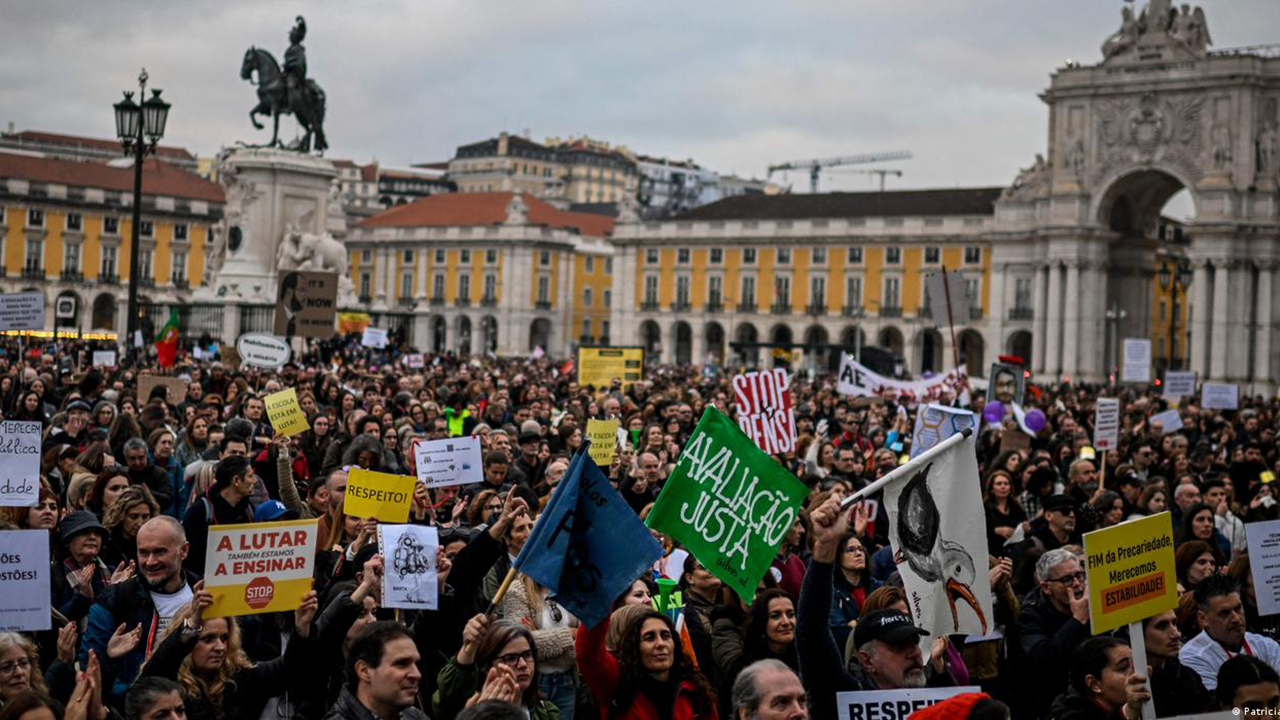 After a month-long, rotating strike that began in mid-January, 150,000 teachers and supporters staged a major demonstration in Lisbon, Portugal on Saturday, Feb. 11. The demonstration by teachers was probably the largest single action by educators in Portugal’s history, and showed the anger that has been building for years among education workers. In all, eight unions representing education workers participated in the protests and strike.