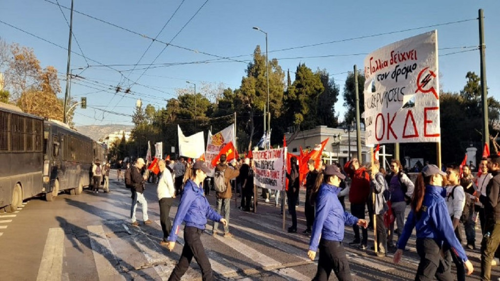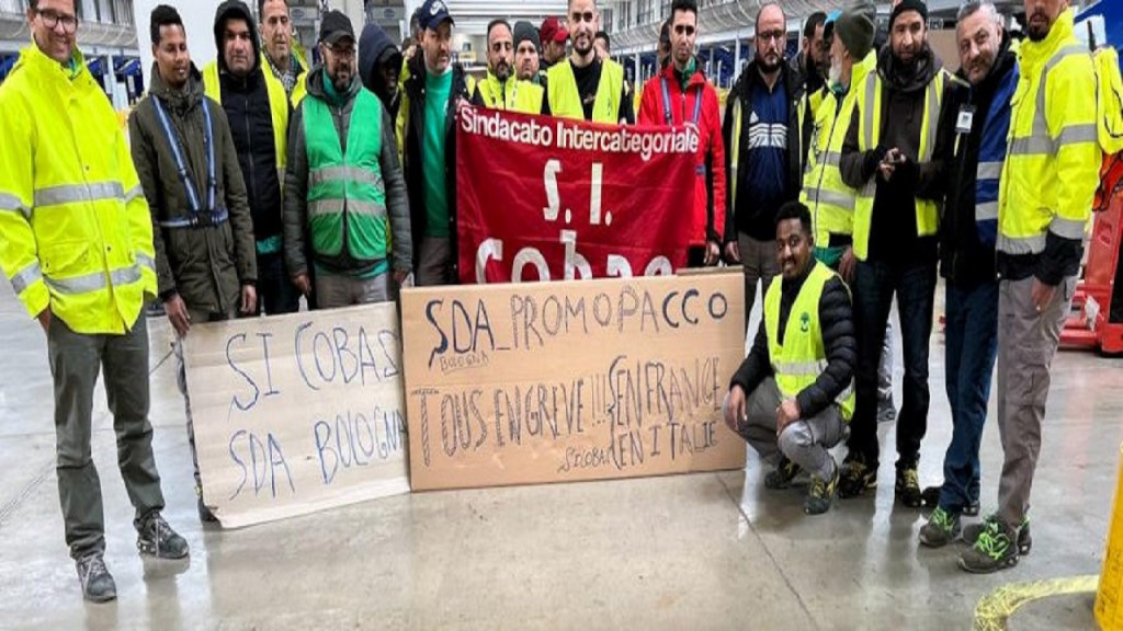 The banner in the photo reads: “The strike continues from France to Italy… Strike!”