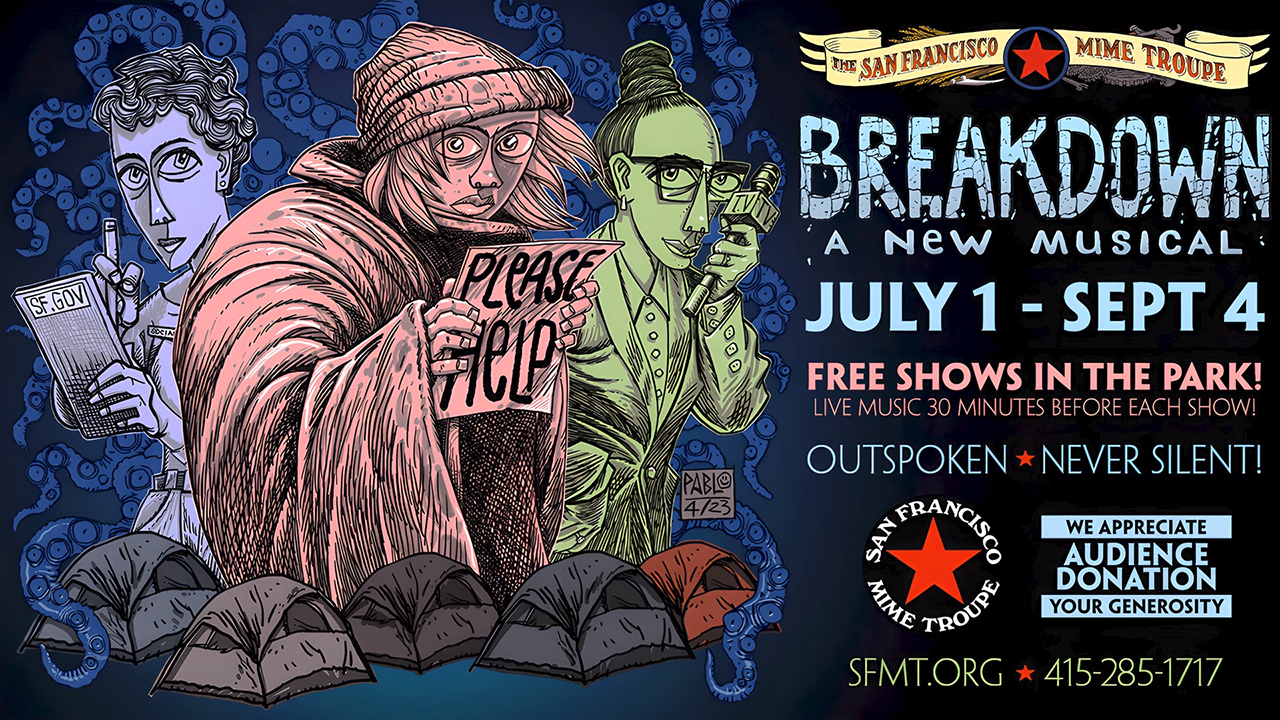 For over 60 years the San Francisco Mime Troupe has performed political theater in public parks throughout the Bay Area and abroad. The Tony-award winning company maintains their mission “to create and produce theater that presents a working-class analysis of the events that shape our society, that exposes social and economic injustice, that demands revolutionary change on behalf of working people, and to present this analysis before the broadest possible audience with artistry and humor.”