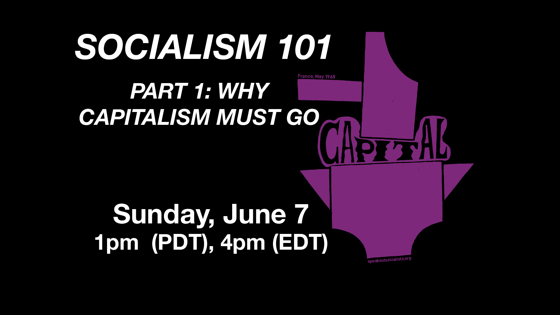 This is Part One of a series. The following week, Sunday, June 14, we will host Part Two: Why We Need Socialism. Participants are encouraged to attend both if possible.