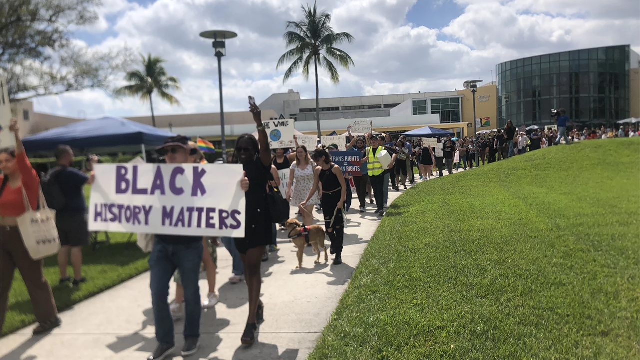 Students and faculty protesting at Florida International University. Image source: Kate Payne / WLRN