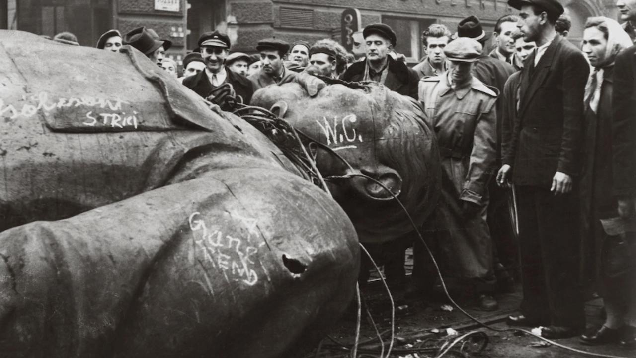 Workers tear down the statue of Stalin in the 1956 Hungarian Revolution. (Image Credit: Andor D. Heller)
