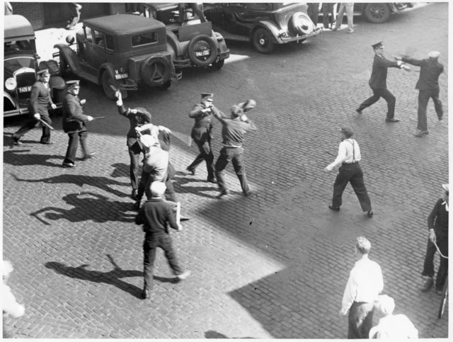 Other unions, particularly in the building trades, struck in sympathy with the Teamsters. On May 22, the picketers took the offensive and succeeded in driving both police and deputies from the market and the area around the union’s headquarters. Of the several hundred deputized “special police,” two were killed. In the following large clashes, another roughly two dozen special police, municipal police, and strikers were beaten or wounded.
