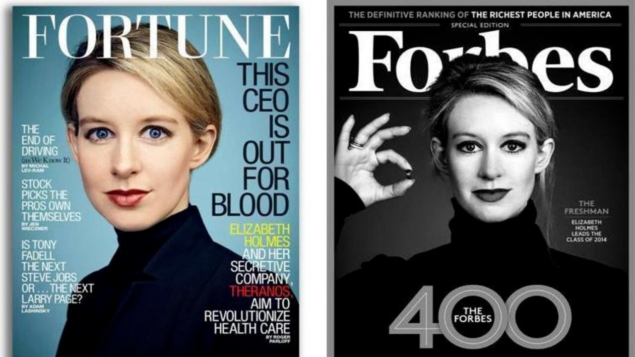 Elizabeth Holmes, CEO of Theranos, being recognized for her talents within the capitalist system.